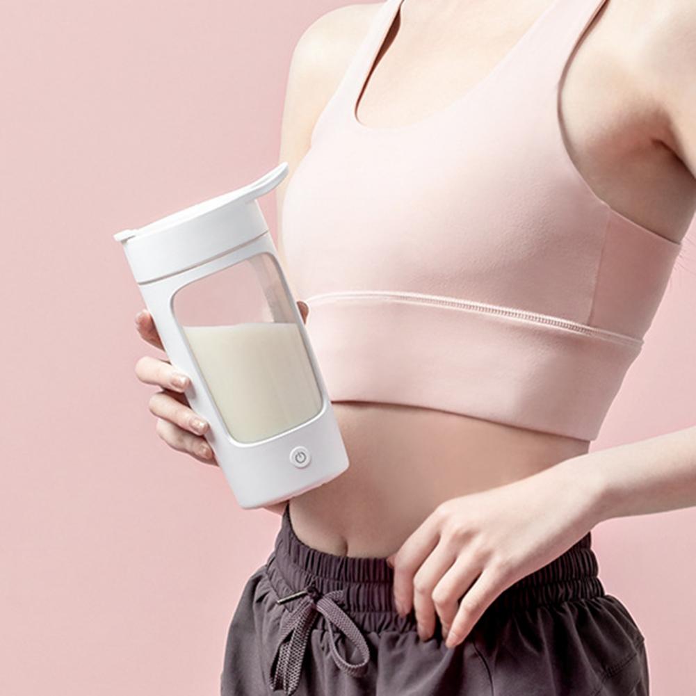 The shaker cup is rechargeable and has strong battery life, which is also very convenient to use when going out. Cup with scale 100ml-300ml-500ml, so that you can know the amount of water you drink every day.